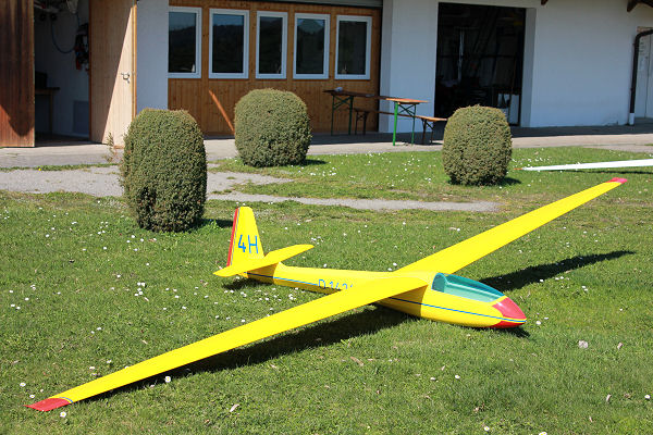 Bauweise : Corbon vollverstärkte Styro-Abachi Tragflächen mit eingesetztem Rippenfeld ; Carbon-Holm mit Holmbrücke.